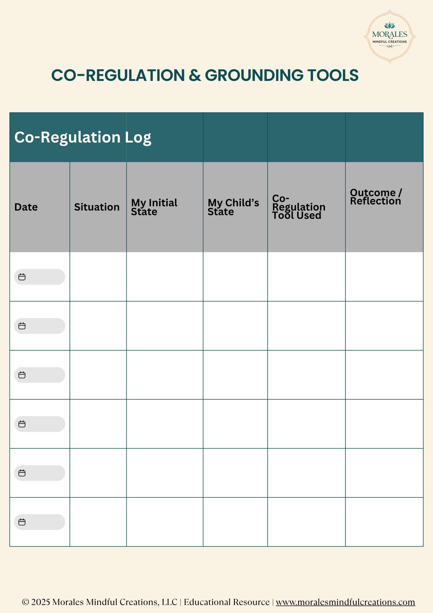 Co-regulation — the shared emotional exchange that helps two nervous systems find balance. This worksheet is made for caregivers or professionals to share with their clients.