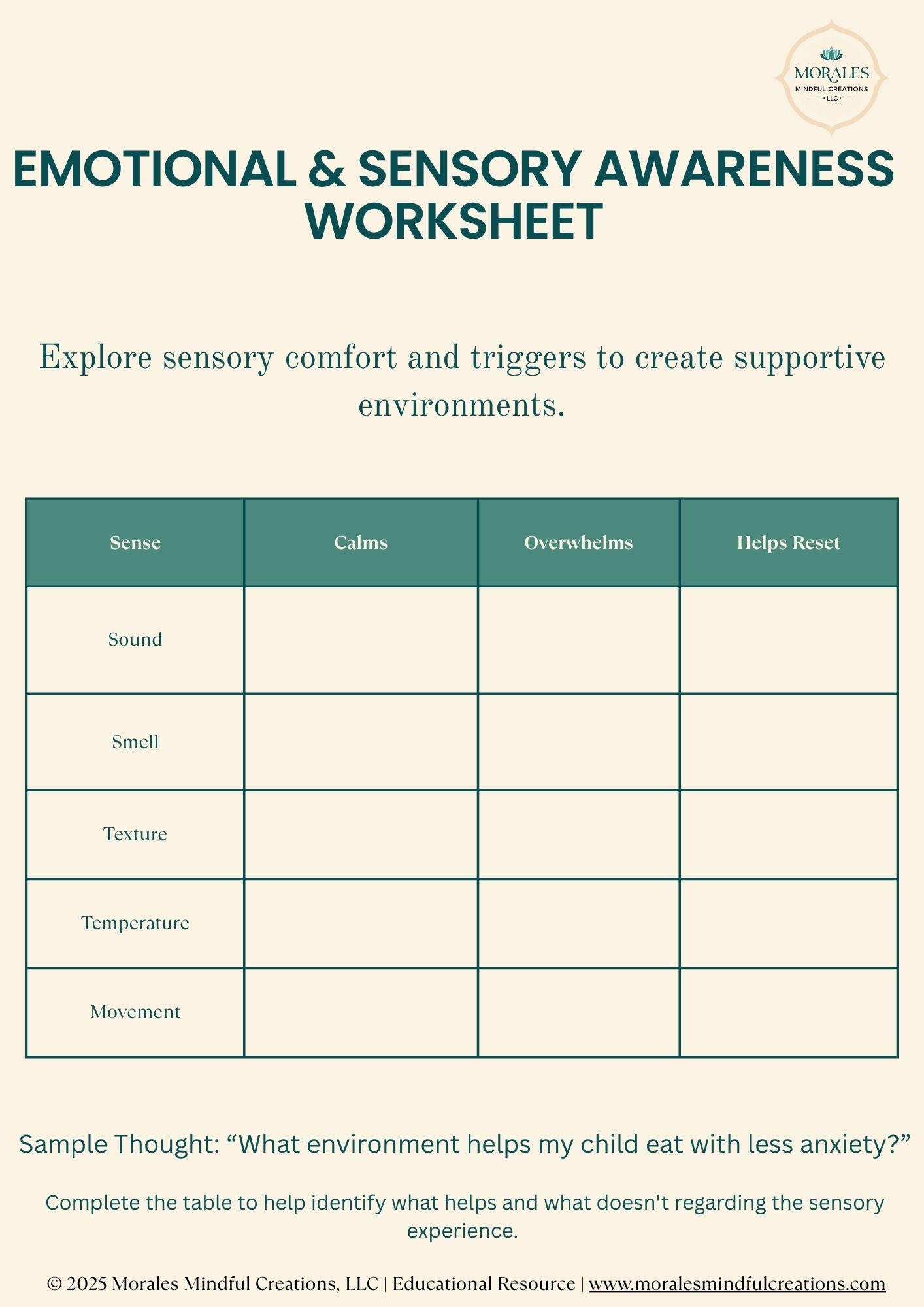 Identify sensory triggers and comfort strategies around food, textures, sounds, smells, and environments.