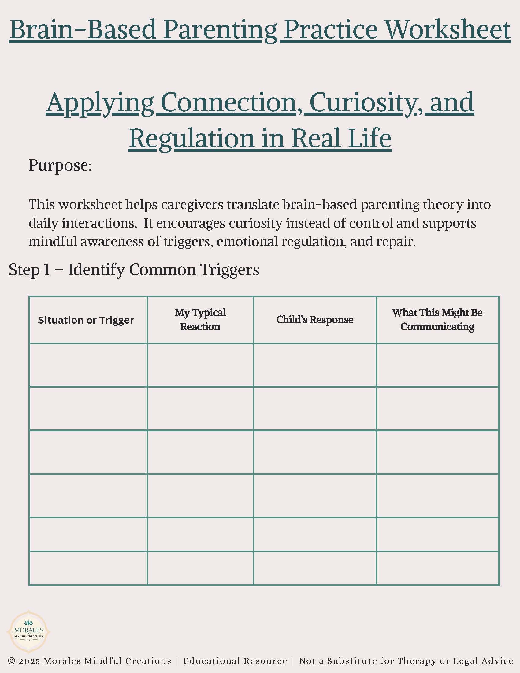 This packet explores how the brain influences emotions and behavior, providing easy-to-follow guidance, visuals, and activities that promote stronger parent-child relationships. Ideal for therapists, educators, social workers, and parents seeking to understand and support children through a trauma-informed and neurodiversity-aware lens.