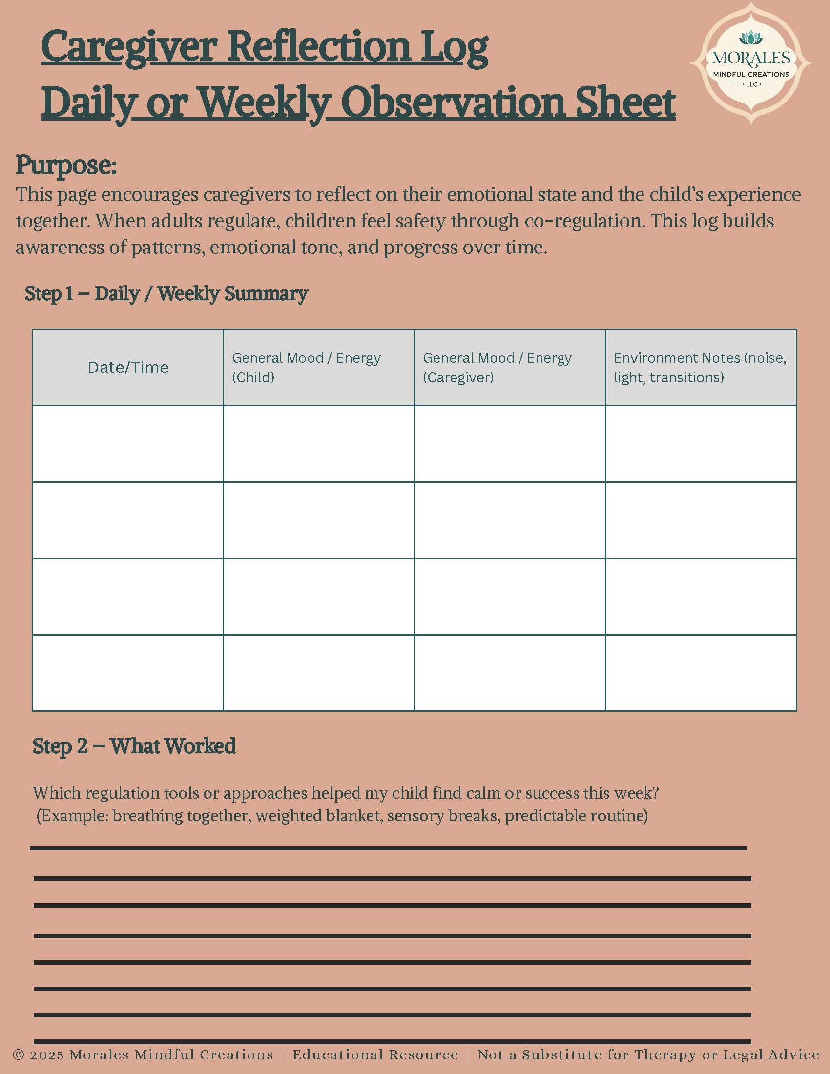 Caregiver Reflection and Journal | Parenting Neurodivergent Children | Printable PDF for Parents and Therapists