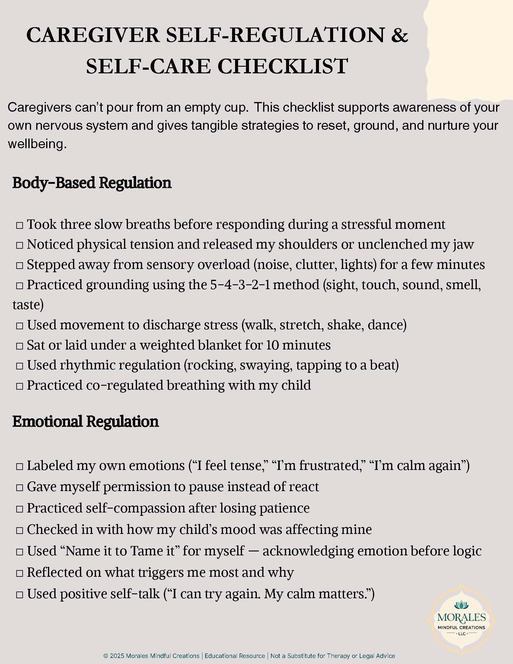 Ask a questionThis thoughtful reflection and journaling packet was created to support caregivers raising or working with neurodivergent children through mindfulness, compassion, and brain-based understanding. Designed by a mental health professional, this resource encourages parents, foster caregivers, and educators to explore their emotions, beliefs, and responses — helping them build stronger, more connected relationships with the children in their care.