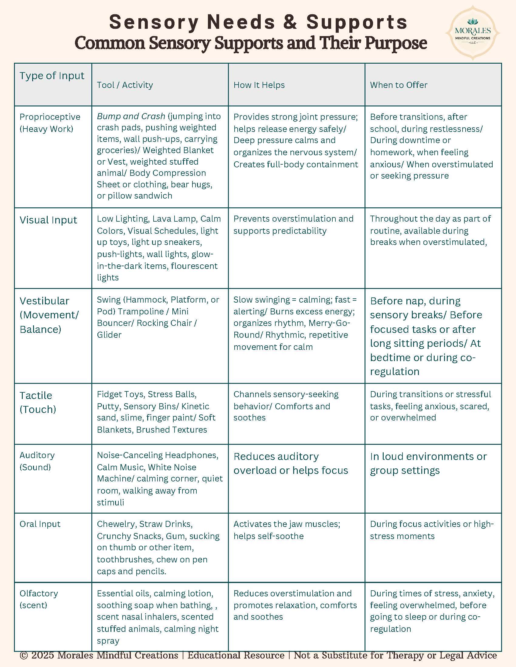 Rooted in a trauma-informed and neurodiversity-affirming approach, this packet encourages collaboration between children and caregivers to create personalized sensory plans that truly support daily success.