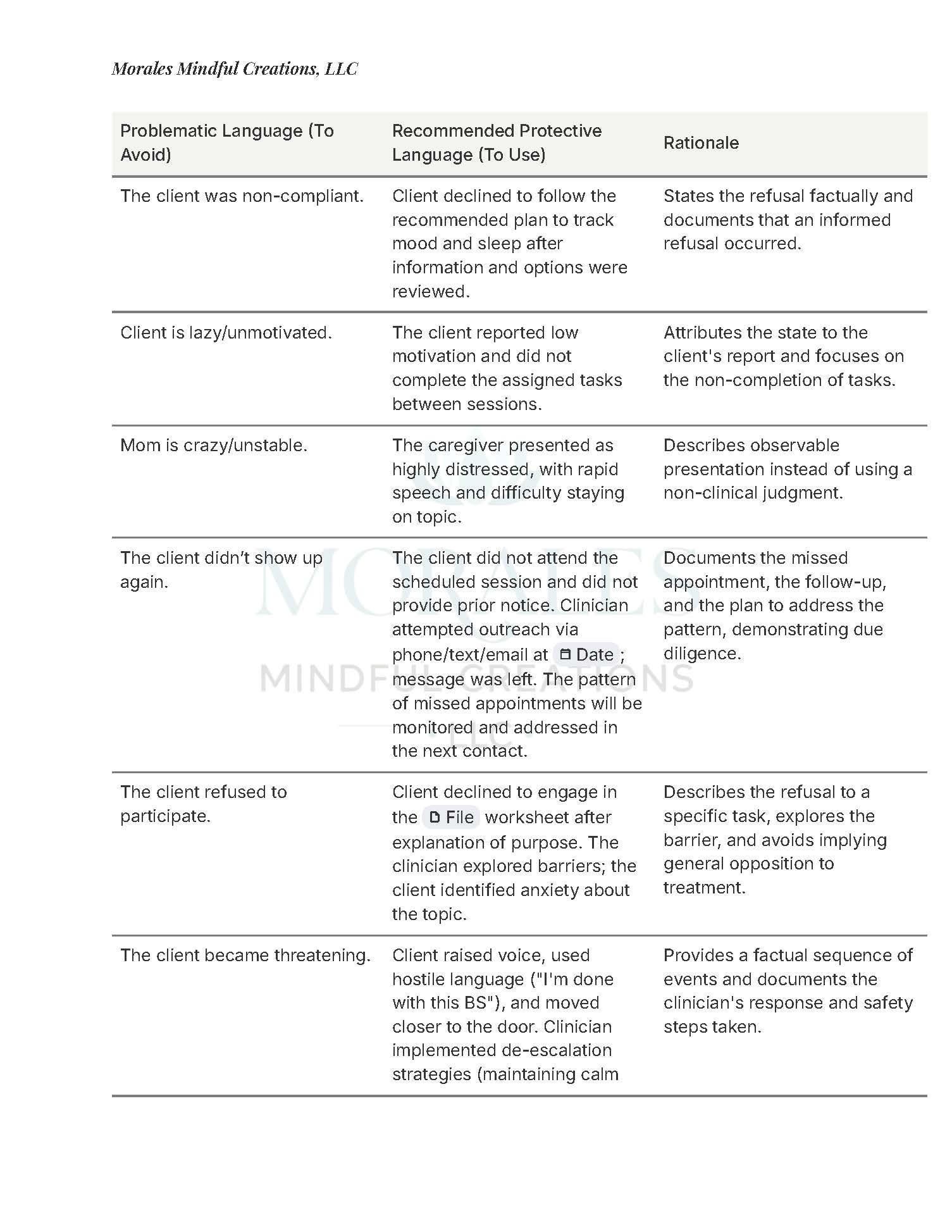 A complete Clinician Template Packet designed for therapists, social workers, counselors, and mental health pros who want clean, organized, evidence-based documentation. Perfect for private practice, community mental health, or internships.